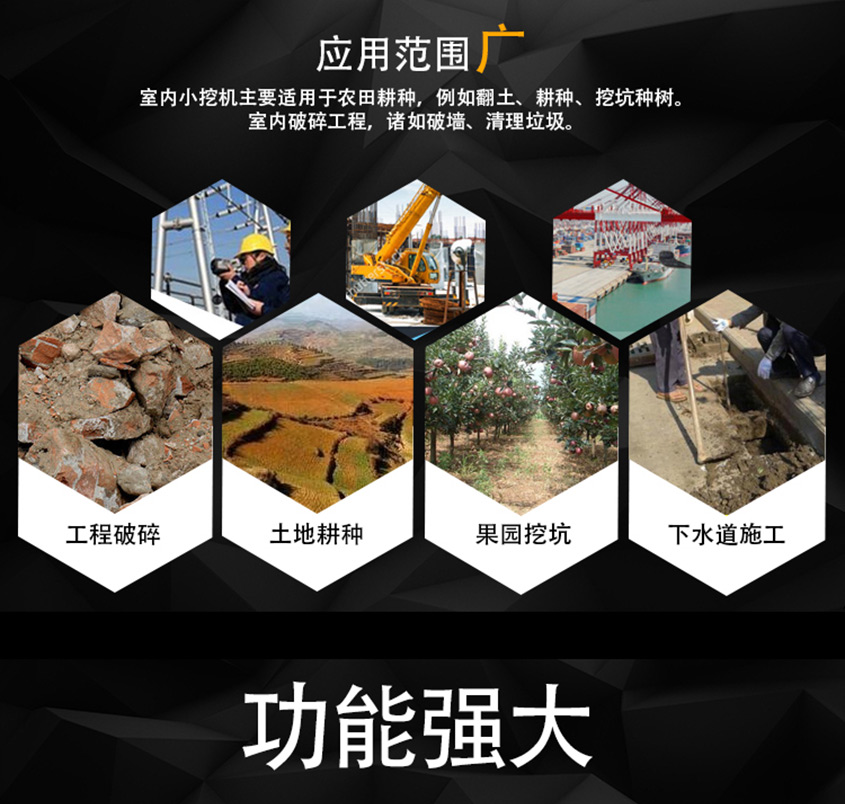 KV17小型挖掘機自主設計、外觀漂亮、配置高、性能優(yōu)越、油耗低、作用范圍廣 ,適合蔬菜大棚的土地疏松,市政府部門的園林綠化、果園苗圃栽樹挖坑,混凝土路面破碎, 砂石料攪拌,空間狹小的施工作業(yè)等。適用快